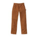 LOOSE FIT; STRAIGHT LEG · 12 oz/yd² - 407 gsm · 100% Cotton · Firm duck · Sits at the waist · Long Trousers · Two front slant pockets with extra hidden coin pocket in right front · Left-leg hammer loop · Two fully lined back patch pockets · Double front panels for durability with bottom entry knee pad pockets · Right leg back utility pocket for easy storage of ruler or welding rods; left leg back tool pocket · Folded single stitched clean finished hem · Triple stitched main seams · Carhartt label sewn on pocket