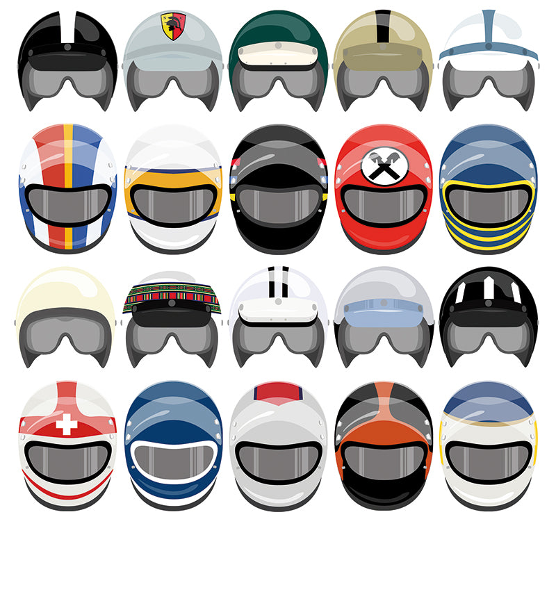 Toate căștile de pe acest nou design au fost folosite în anii '60 și '70, o durată care a adus unii dintre cei mai talentați și carisma piloți din istoria cursei auto.